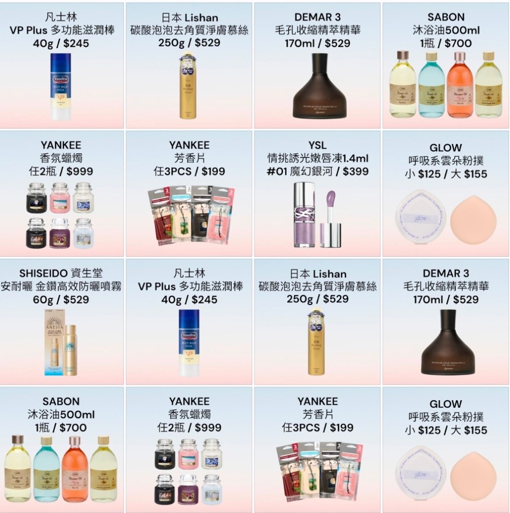 還有很多你需要的洗沐、保養品,上千種商品,肯定找得到你要的,慢慢挑喔!!